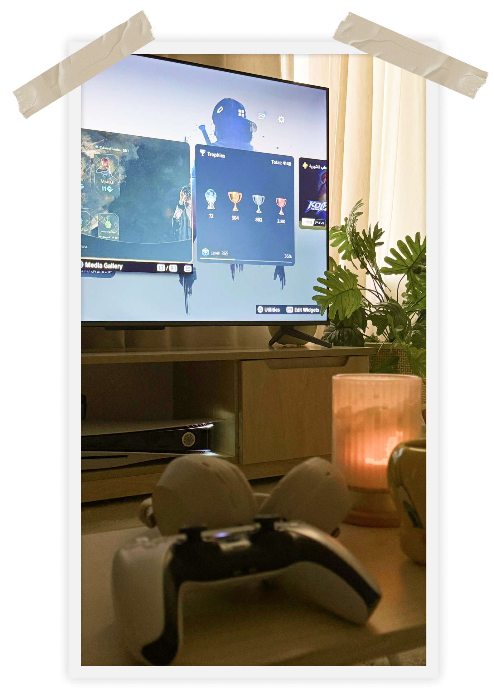 I play a lot of PlayStation — I love games with good stories and challenges. And sometimes I play just to collect trophies.